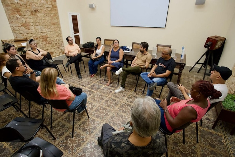 O encontro com representantes de entidades ligadas ao segmento da literatura, no Auditório Maria Helena Gomes, foi conduzido pela presidente da FCJOL, Fernanda Campos; pela secretária de Turismo, Patrícia Cordeiro; e pelo secretário de Comunicação Social, Gustavo Matheus.