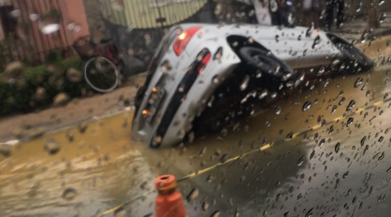 Carro afunda em um buraco na Av Sete de Setembro