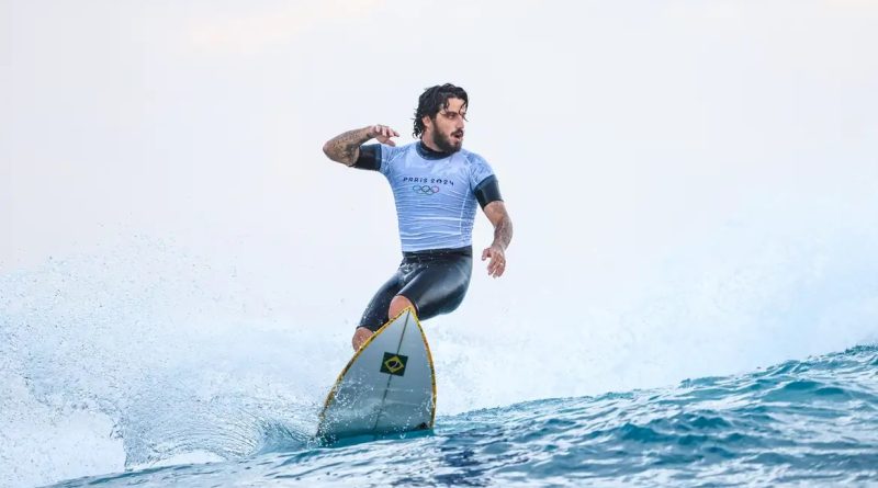 Filipe Toledo foi o último brasileiro a garantir classificação para as oitavas de final do torneio olímpico do surfe, que é disputado na praia de Teahupo’o, no Taiti. Na final da noite de domingo (28), horário de Brasília, ele venceu a bateria de repescagem contra o neozelandês Billy Stairmand por 17.00 a 14.00, com direito a 9.67 como melhor nota.