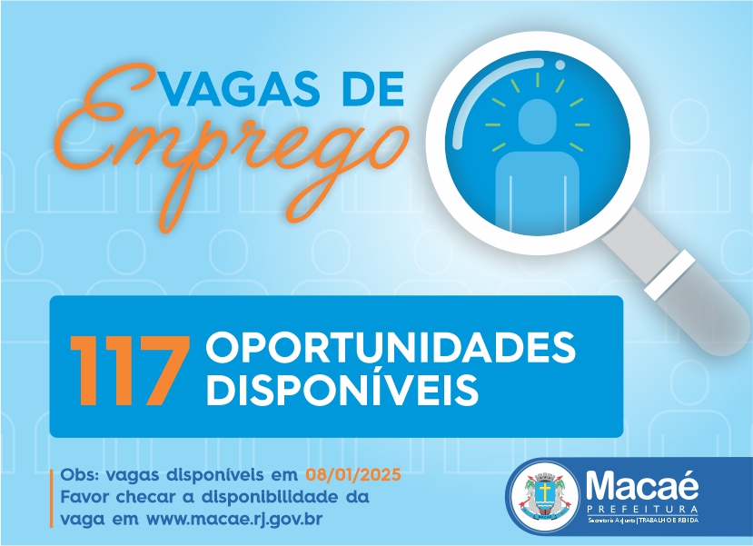 Prefeitura de Macaé divulga 117 vagas de emprego