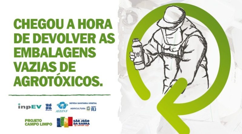 Acontece no dia 28 de maio mais uma ação do projeto Campo Limpo, da Secretaria de Meio Ambiente e Serviços Públicos de São João da Barra, que visa o recebimento de embalagens de agrotóxico. O ponto de entrega será a Subprefeitura, em Sabonete, quinto distrito do município, das 8h às 16h.