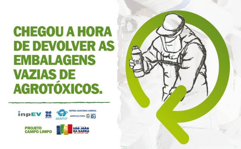Acontece no dia 28 de maio mais uma ação do projeto Campo Limpo, da Secretaria de Meio Ambiente e Serviços Públicos de São João da Barra, que visa o recebimento de embalagens de agrotóxico. O ponto de entrega será a Subprefeitura, em Sabonete, quinto distrito do município, das 8h às 16h.