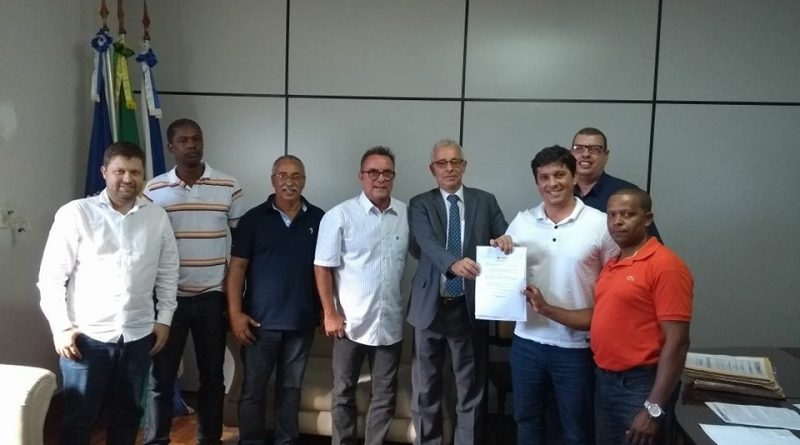 Legenda foto: Prefeito Léo Coutinho, o Juiz da Comarca de Porciúncula, Dr. Marco Antônio Abreu, o Procurador do Município, Dr. Rullian Martins, o Vereador Josiel de Souza, o Diretor da Federação, Marcos Francisco Alvim, e o Coordenador Regional da Federação de Futebol do Rio de Janeiro, Celso Nunes Oliveira.