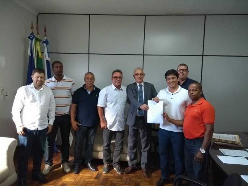 Legenda foto: Prefeito Léo Coutinho, o Juiz da Comarca de Porciúncula, Dr. Marco Antônio Abreu, o Procurador do Município, Dr. Rullian Martins, o Vereador Josiel de Souza, o Diretor da Federação, Marcos Francisco Alvim, e o Coordenador Regional da Federação de Futebol do Rio de Janeiro, Celso Nunes Oliveira.